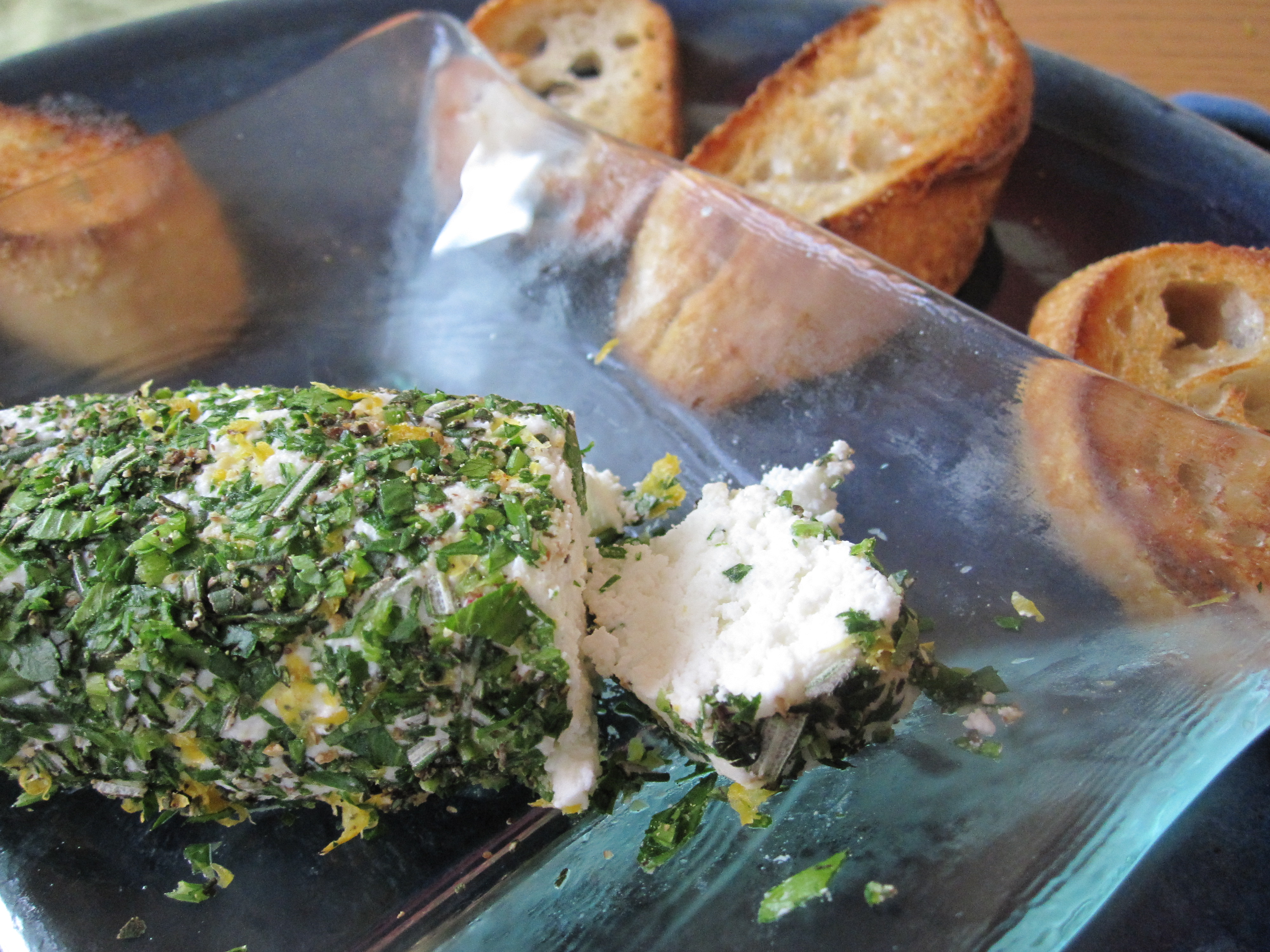 The Fresh Herb Chevre is delicious with grilled or toasted bread. I slice the bread, brush or spray it with olive oil, and then grill or broil until toasted. Guests serve themselves slices of the herb cheese on the toasted bread.