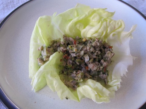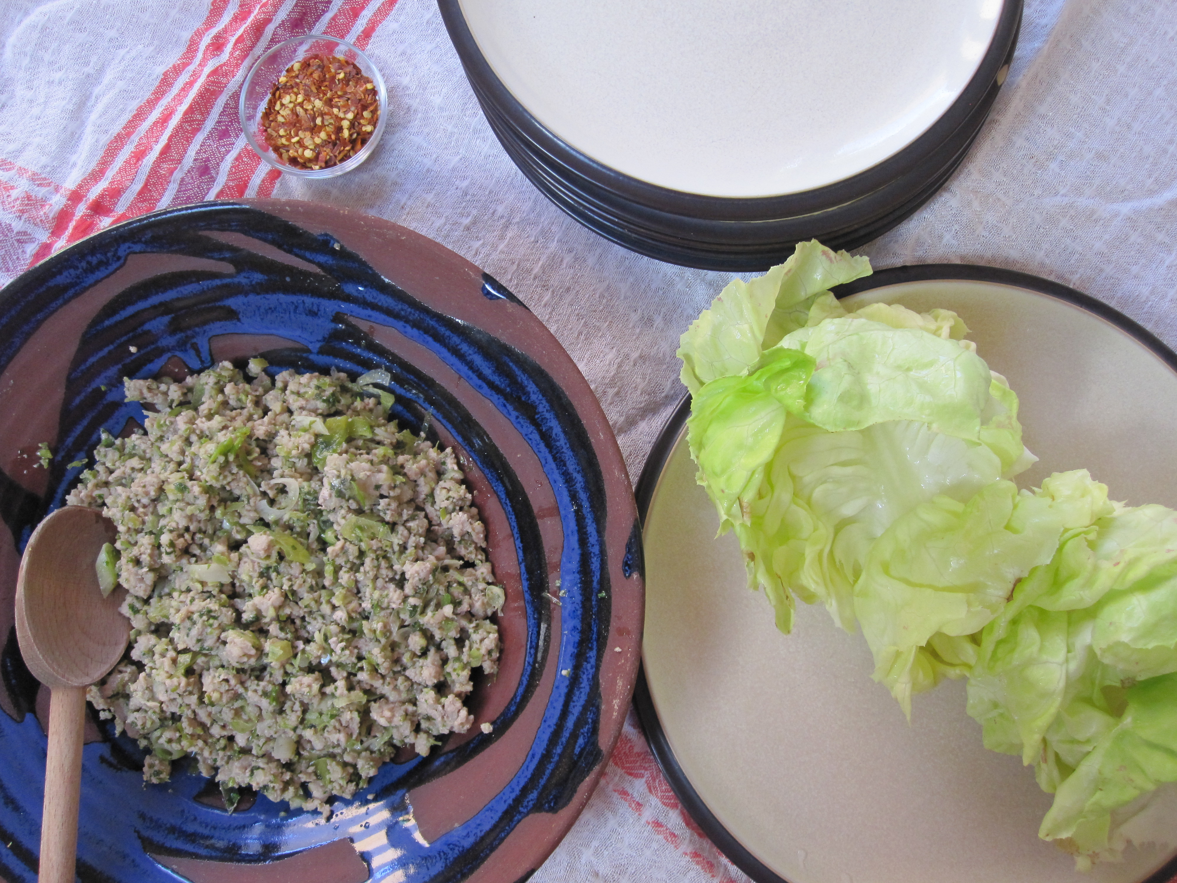 Serve with lettuce leaves for wrapping and red pepper flakes.