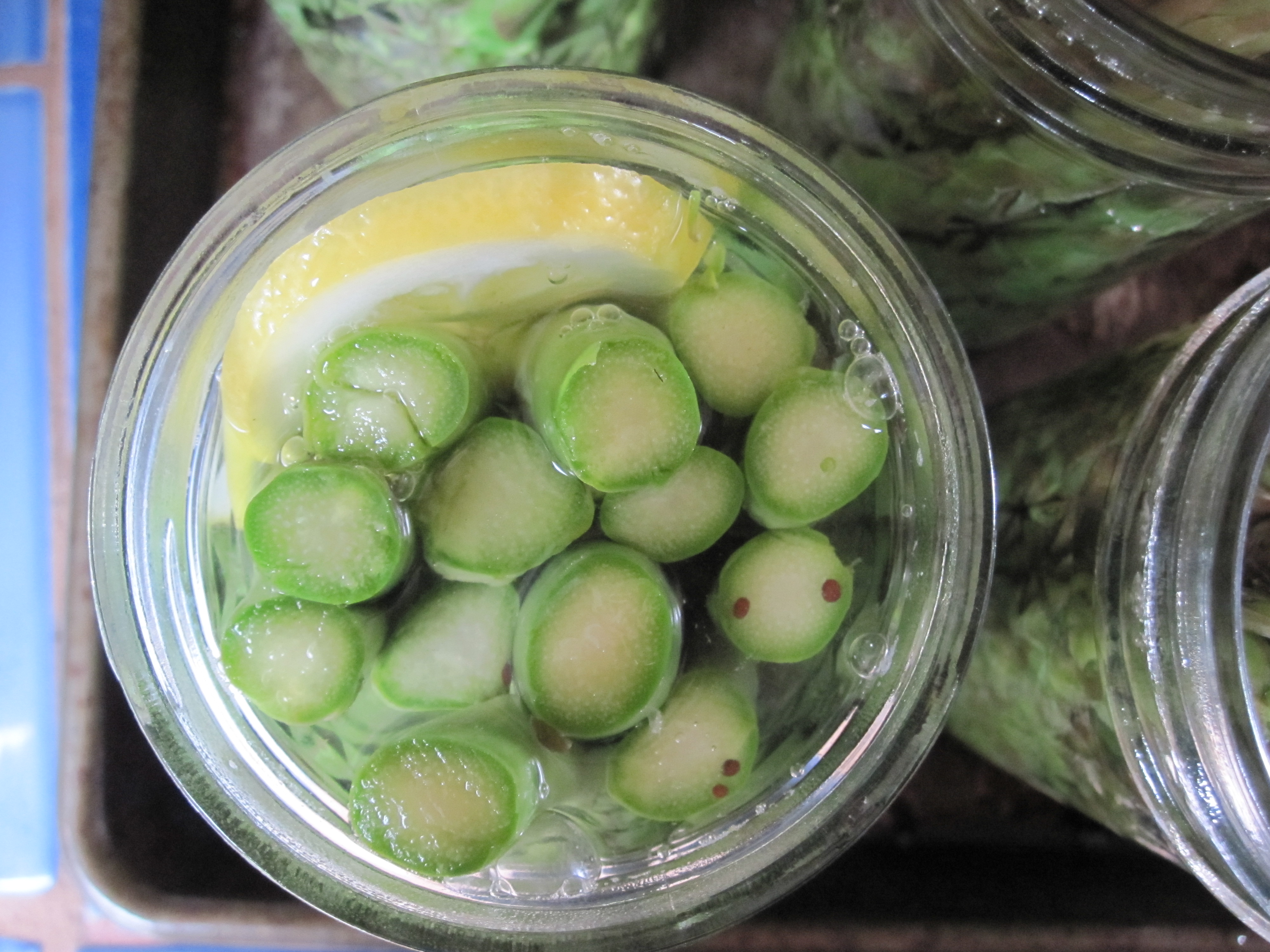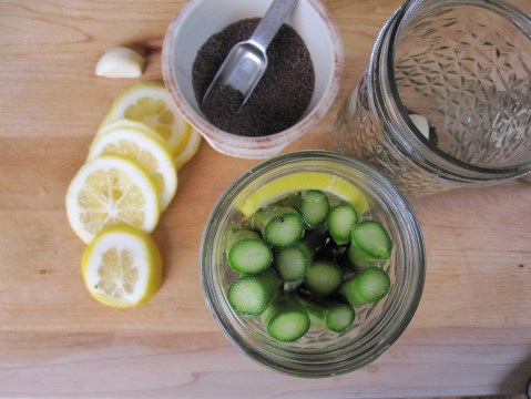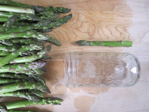 I often speak to people who have never canned food and they express their concerns. Some people discuss worries about the safety of home canning, others suffer from a lack of confidence about how to successfully can food , and still others think they do not have time in their busy lives to preserve the bounty of the seasons. It is to all of those skeptics that I dedicate this recipe. It is a perfect entry-level canning project: almost zero safety concerns, easy to do if you follow the basic instructions, and very quick to put together. And so here is my challenge to all those who have meant to can, but have not: Try this recipe now, while the asparagus is fresh and inexpensive. Fill your shelf with these beautiful jars. Feel the satisfaction of putting up your own food. Let your experience bolster your confidence for more canning projects through the summer. Heed the call of the jar!