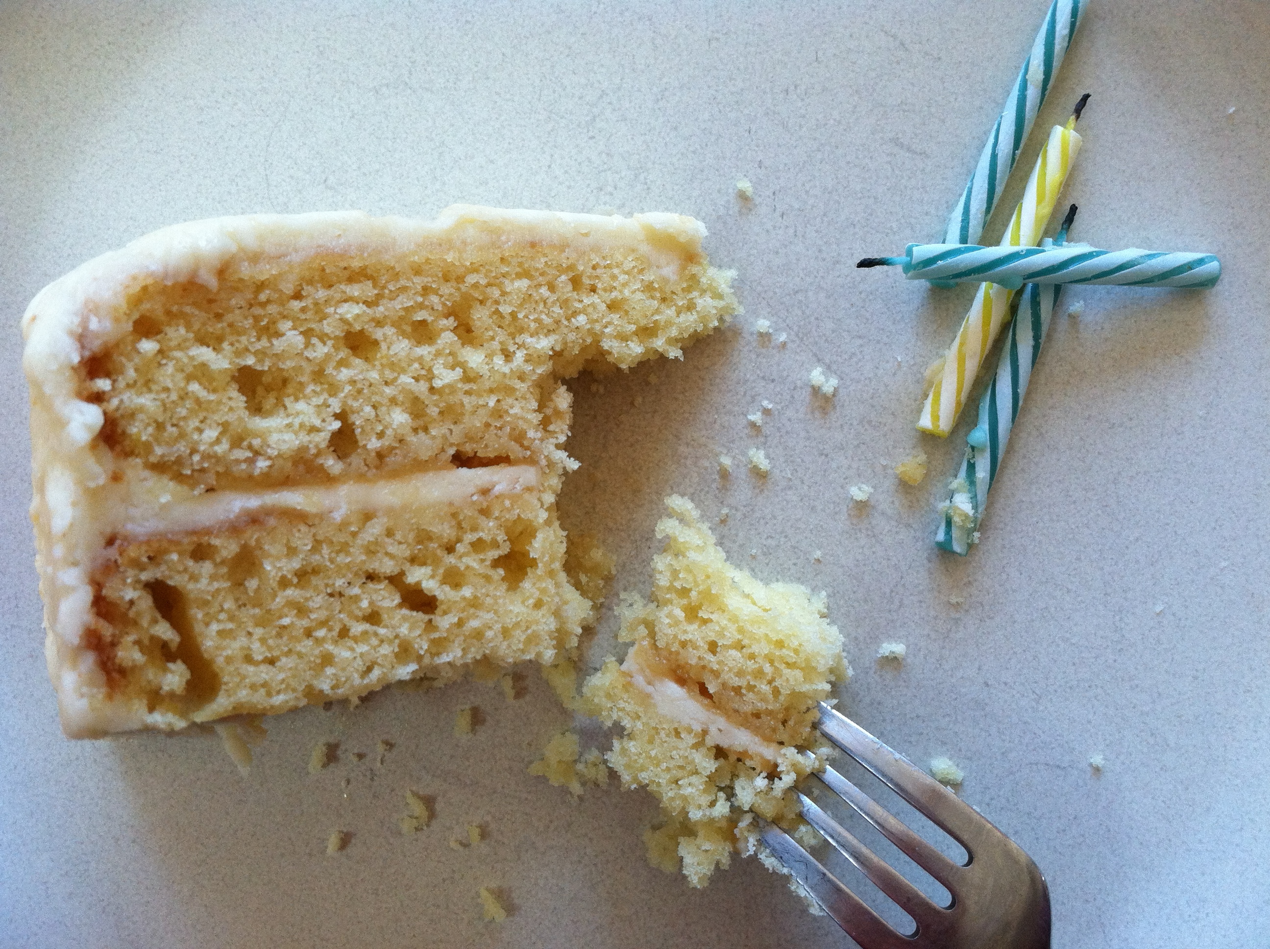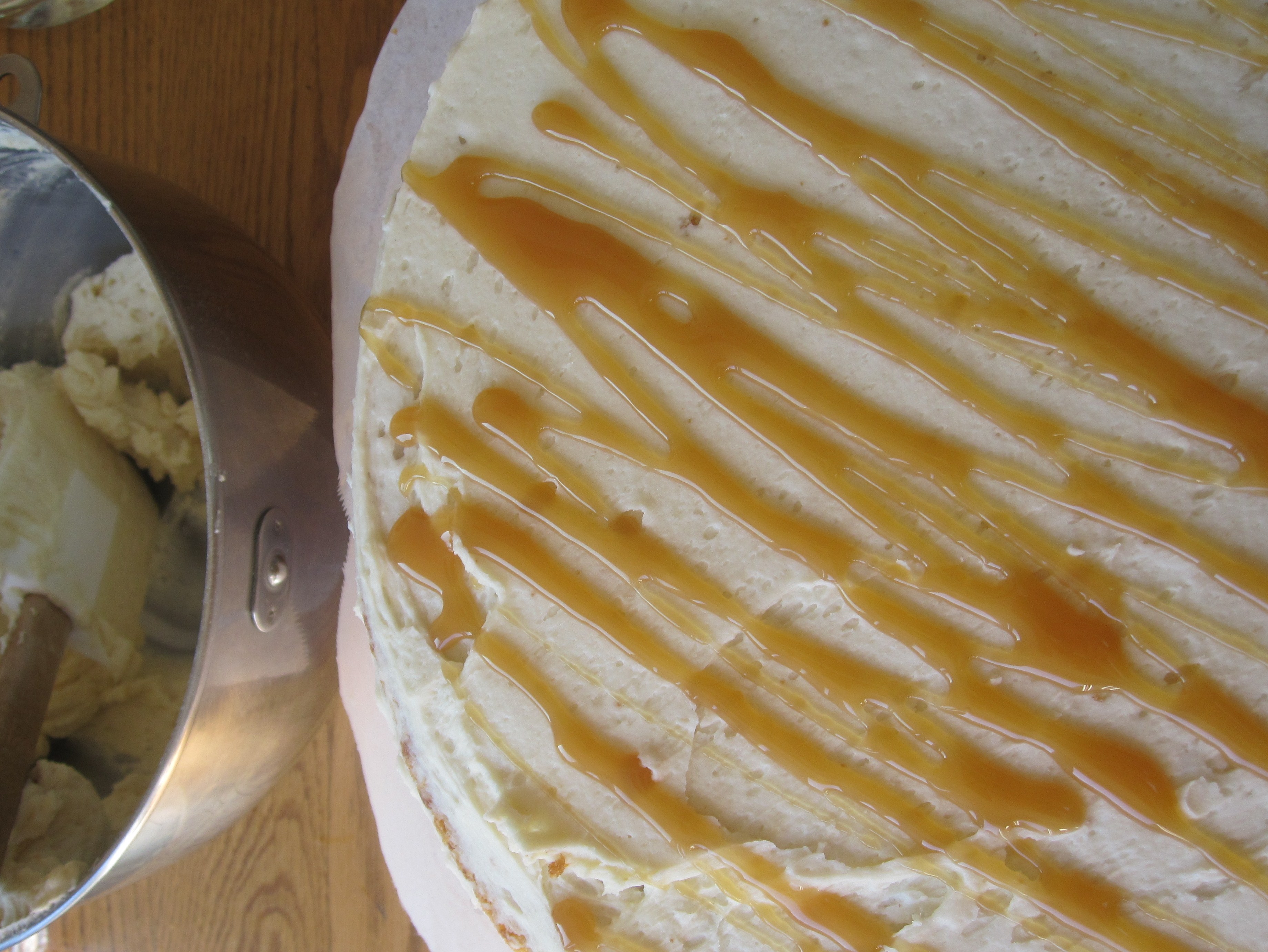 Our festivities began with a few good friends, lots of (still eating the leftovers!) good food, a backyard fire, and of course a birthday cake! My husband is a caramel guy, so after trying to tempt him with cake after cake that featured the power duo of chocolate and caramel, we finally settled on a cake that did away with the distractions and featured the caramel promptly.