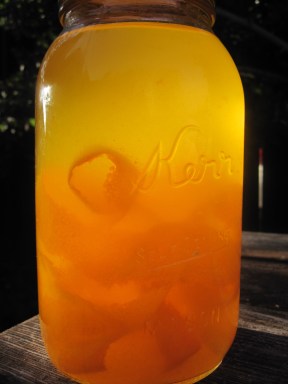 The last few weeks we found ourselves floundering through the happy predicament of what to do with ALL THESE SATSUMAS! Our little tree really put them out this year. We baked them, tossed them in salads, made not one, but two batches of failed marmalade :( We ate a ton (I averaged 2-3 per day) and gave even more away. Still there were more. So being that it is the end of the “winter that wasn’t” here in Northern California and the warm evenings are already drawing us outside, it was logical to peel them, juice them, and steep them in alcohol!