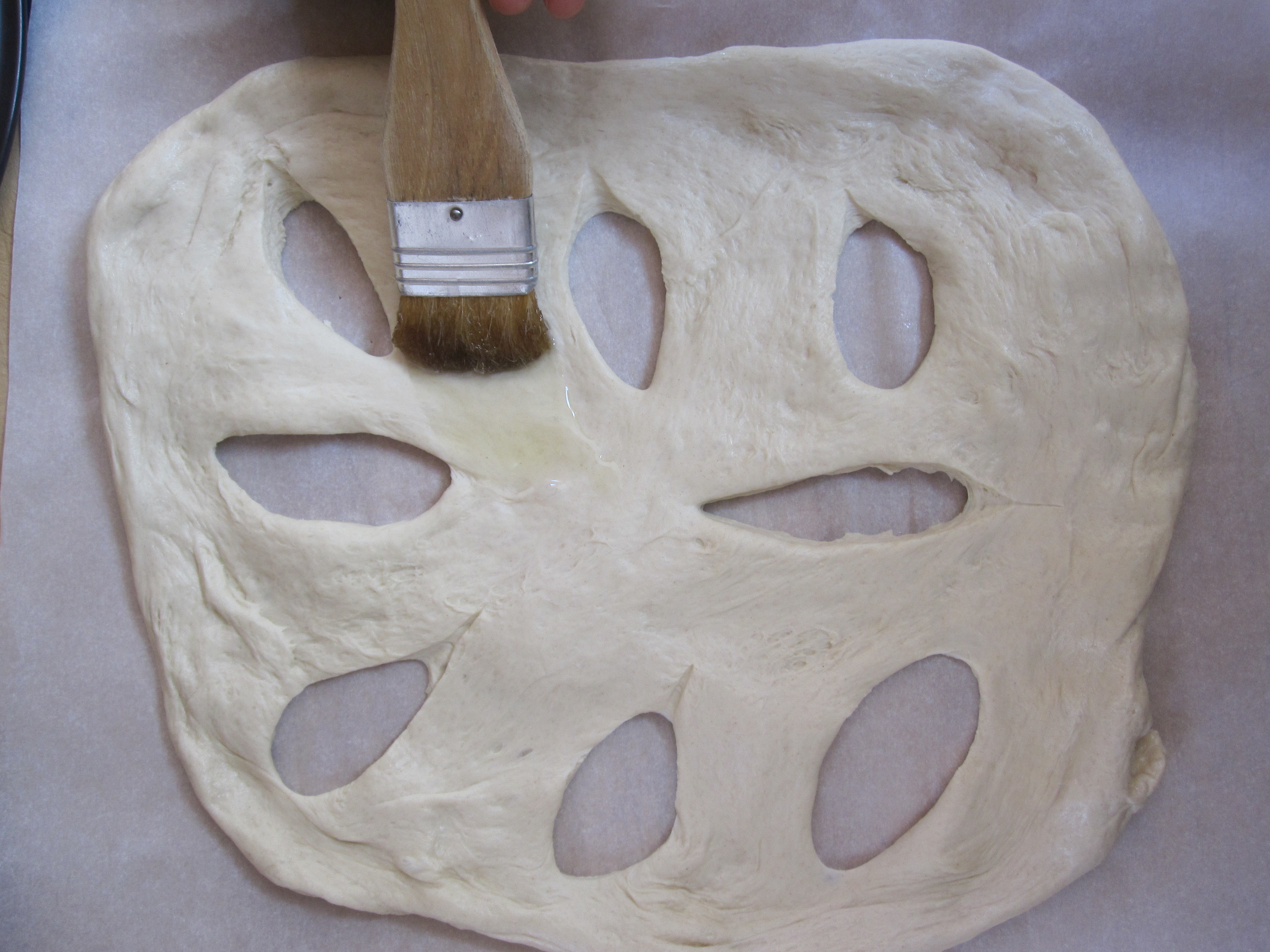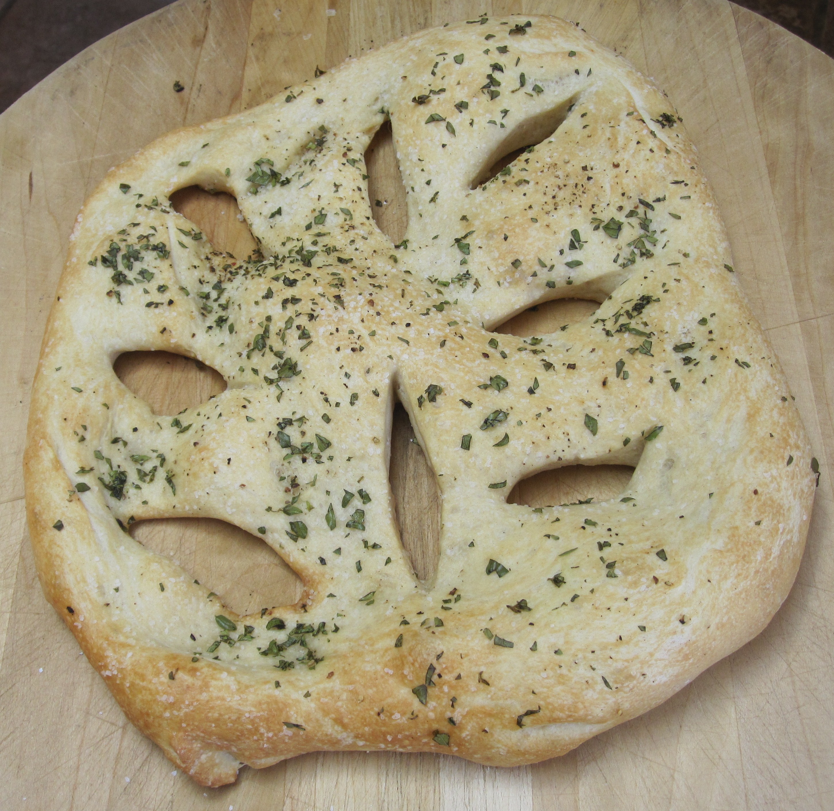 Over the last few weeks, several batches of focaccia made their way through my oven. Each batch took on a different personality. I topped one with oven-dried figs, walnuts, and blue cheese as an appetizer, another I brushed with garlic oil and served as a side dish. Another batch I made into a simple pizza and the last I topped with apples and cinnamon sugar for breakfast. Anyway you top this bread, it is delightful.