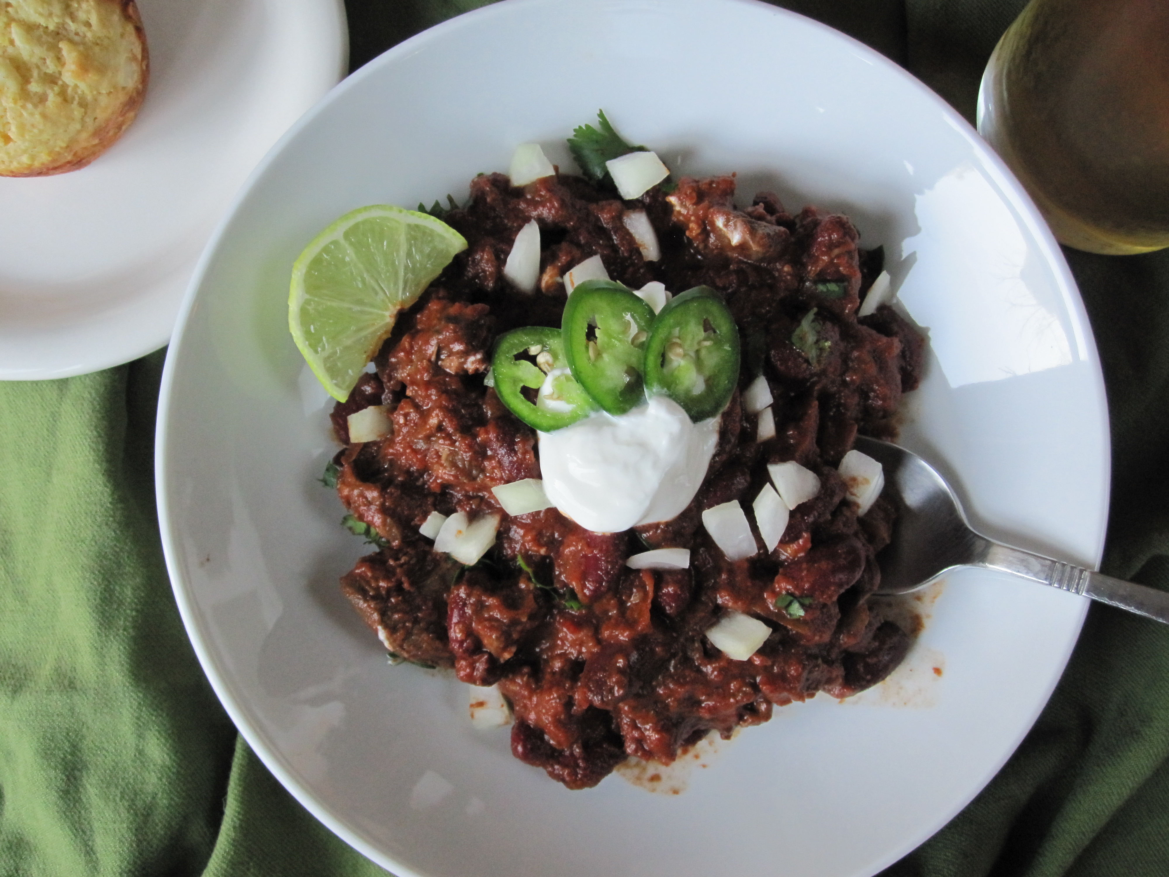A rich pot of chili may be the ideal meal for game day. It can be made ahead and kept warm on the stove or in a crockpot. Hungry guests can easily fill their bowl whenever they like. I prepare it in the morning and let it cook long and slow on the stove or in the crockpot. All that is left to do before the game is to make sure there is enough beer in the fridge and whip up some cornbread.