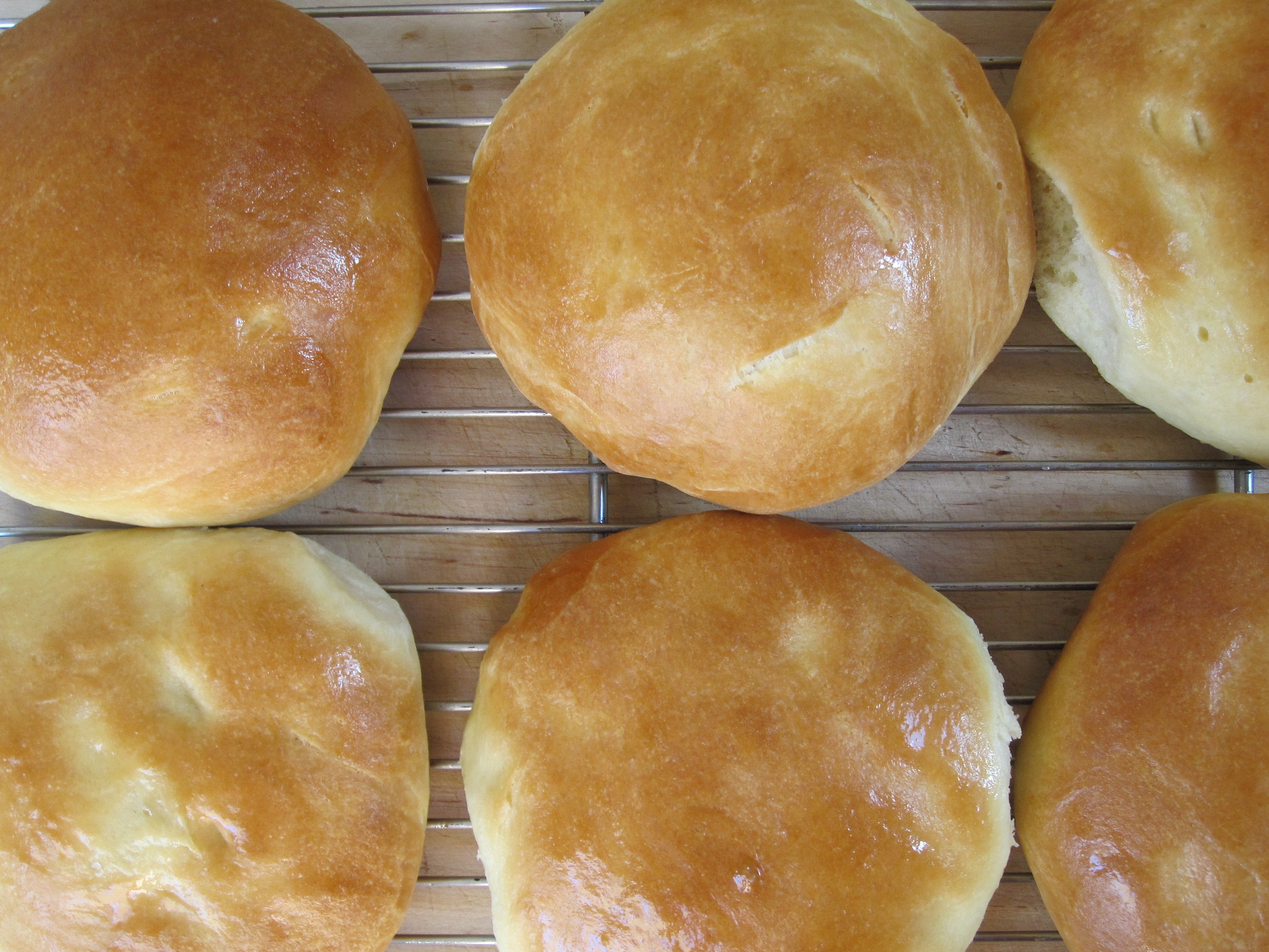 This recipe came from King Arthur Bread. They were so good that my son declared, “Mom, these are CRAZY. I never want to buy buns again.” (I love that my kids love to eat!) The recipe uses an egg and some butter, so the buns are very tender and hold together well under the pressure of the burger and condiments. They browned up beautifully and some extra butter brushed over the top yields a very tender top, making it easy to bite into the burger. They came together very quickly and rose through the day. The recipe makes 8 buns large enough for 1/4 pound burgers or bigger. This is enough for two meals for my family, so I froze half of the buns for another dinner. You could also make the buns smaller and use them for sliders. They would be delicious with pulled pork. Mmmmm… We will definitely make these again.