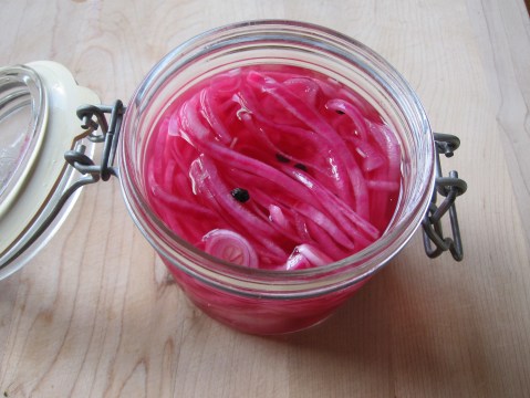 The Red Pickled Onions are also from The Greens Cookbook. They are very easy to make and take only a day to sit and cure. They are great with this sandwich, but also with sausages or any meal that you want to add a zippy condiment.