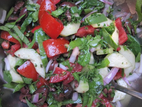 Armenian Lamb Kebabs are very simple to prepare, yet just different enough to pass for something special if need arises. They are perfectly seasoned to compliment the lamb without overpowering it. The Greek Salad is a fabulous side to the lamb, but it could be paired with any number of other meats.