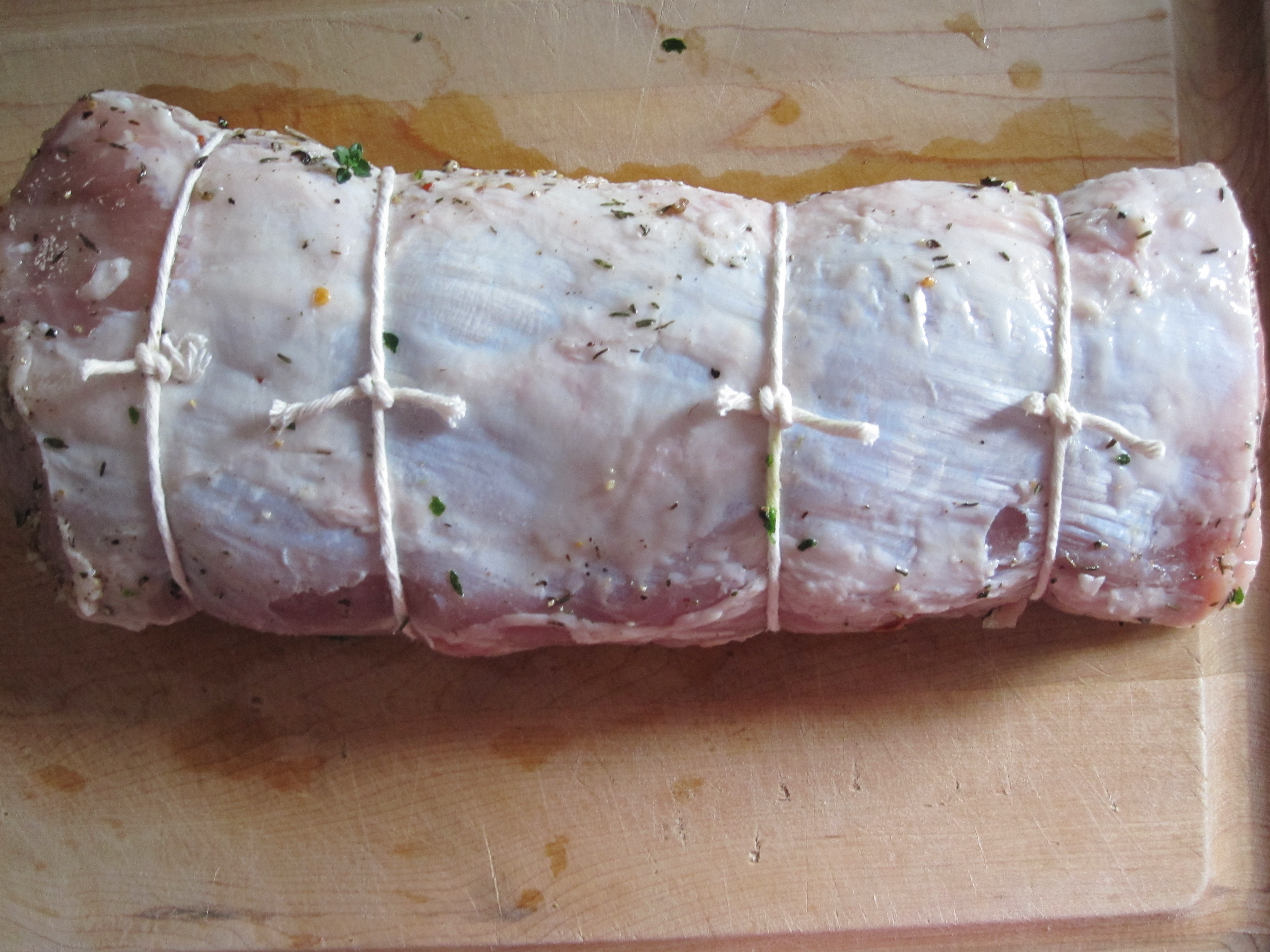 Our most recent special meal was Herb Rubbed Pork Loin. I used an exceptional brine from the girl and the fig that I have used in the past with chops. Brining allows the meat to retain moisture through the cooking and infuses the meat with tremendous flavor. To ensure the brine and seasoning could permeate the entire roast, I sliced the meat horizontally, a technique I picked up from Cook’s Illustrated. After the brine, I marinated the meat in mustard and herbs from the garden. We were able to take advantage of unseasonably warm weather here in Sonoma County and grill the loin. This could easily be roasted in the oven as well with the added bonus of being able to collect the juices for a gravy.
