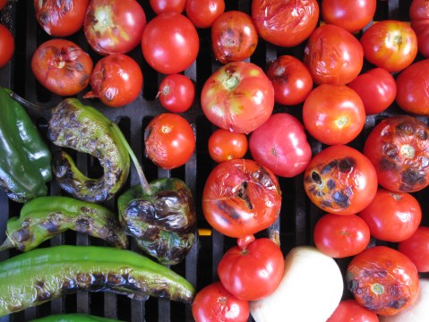 To be honest, I have not had great success with canned salsas in the past. Each recipe I used seemed have one of two problems: the salsa was too watery and/ or the specified canned lemon juice gave the entire batch a foul artificial taste. This recipe takes care of each of those issues and demonstrates some serious tasty flavors. Instead of simply peeling the tomatoes, I grilled them to lend a bit of a charred flavor. After skinning and removing the core, the tomatoes drain in a colander which removes most of the excess water and allows the salsa to easily thicken up on the stove. In place of lemon juice, the recipe called for half white vinegar and half lime juice. This gives it a perfect acidity and delicious flavor from the lime. My only complaint is that I only ended up with five pints. These are sure to go fast around our salsa-loving house.
