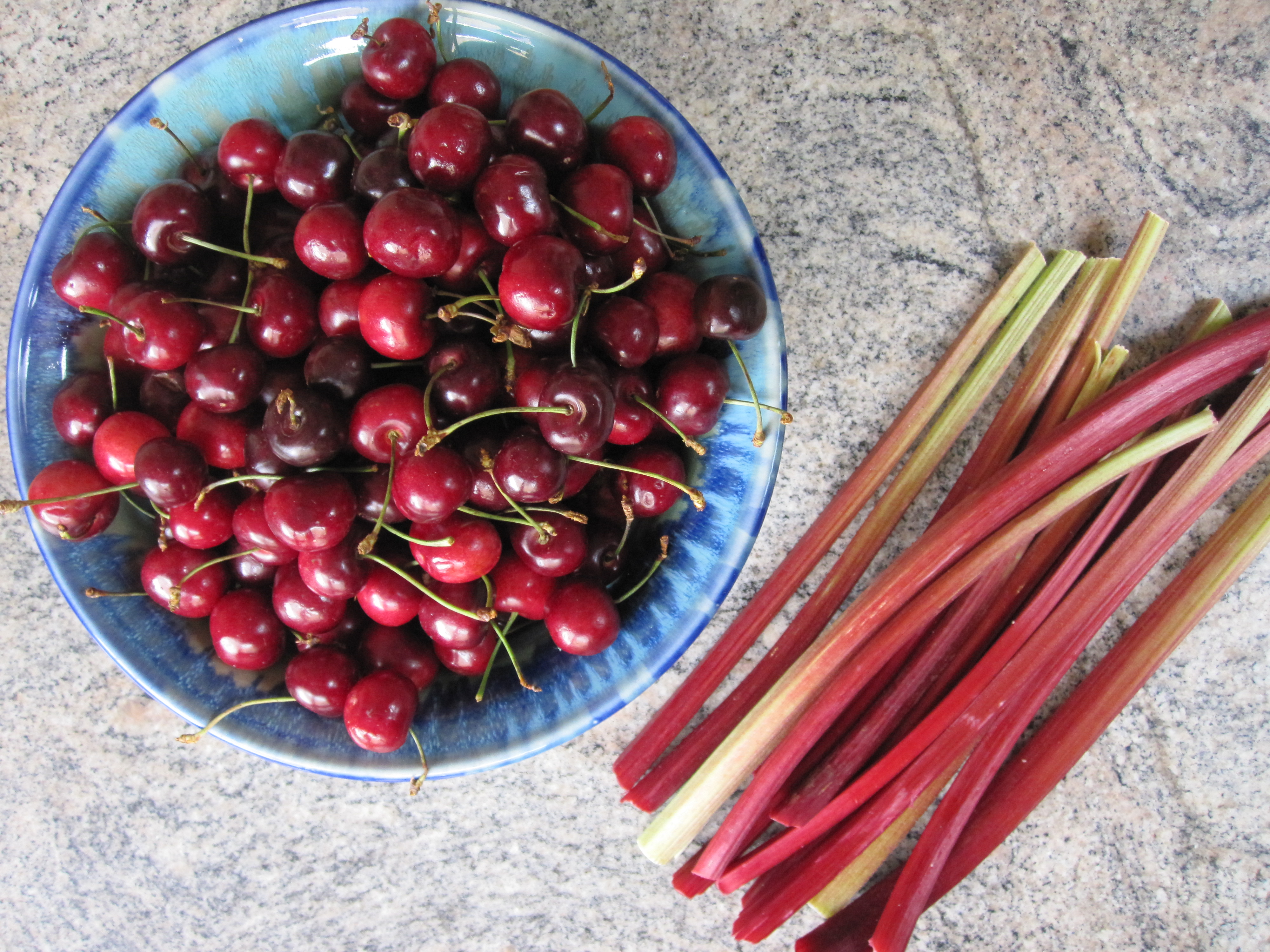 Cherry Rhubarb Jam is a delightful balance of sweet and tart with a rich background note of vanilla. The color is absolutely divine. This is my second attempt at this type of jam and it is an absolute hit. There is a relatively small amount of sugar added. Cherries are so naturally sweet that it is very easy to over-sweeten them. The fruit macerates for an extended time before cooking. This reduces the overall cooking time, since the fruit has already given up its juice. Shorter cooking times mean fresher tasting jam and more vibrant colors. This jam is sure to a new June tradition in our house. Absolutely delicious!