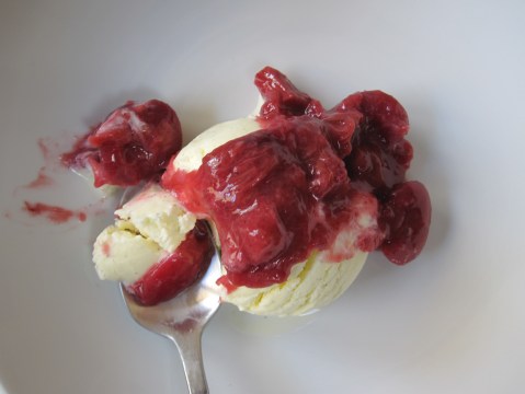 Vanilla Ice Cream with Cherry Rhubarb Sauce